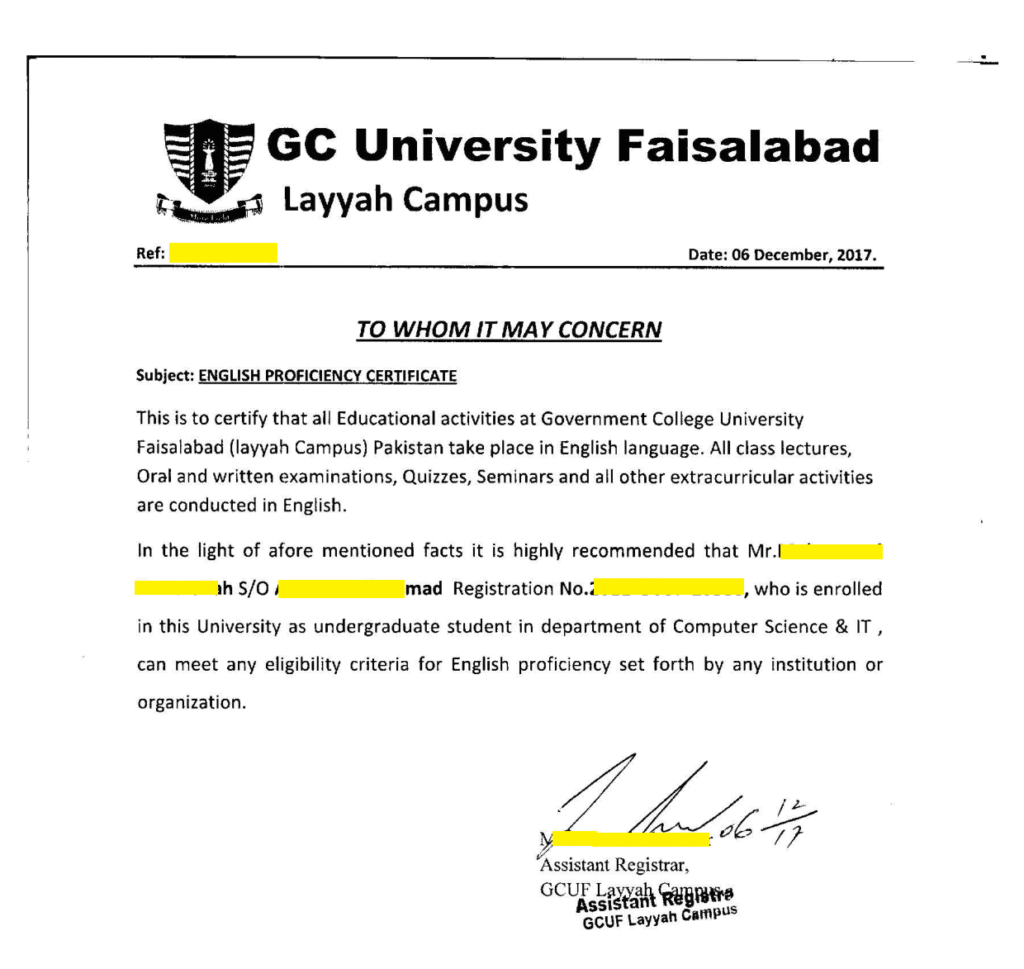 - If you completed your BS degree from a university such as the University of Bahawalpur or Islamabad University and are applying for a Master’s in China, your English Proficiency Certificate must be issued by that university.