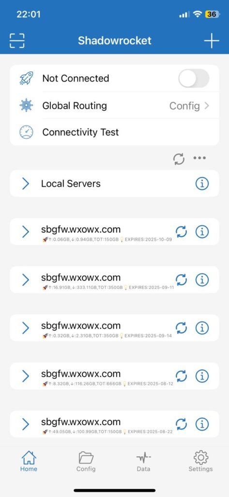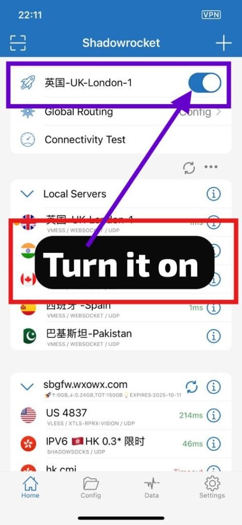 Once ShadowRocket is installed, you will see Shadowrocket VPN APP dashboard interface .